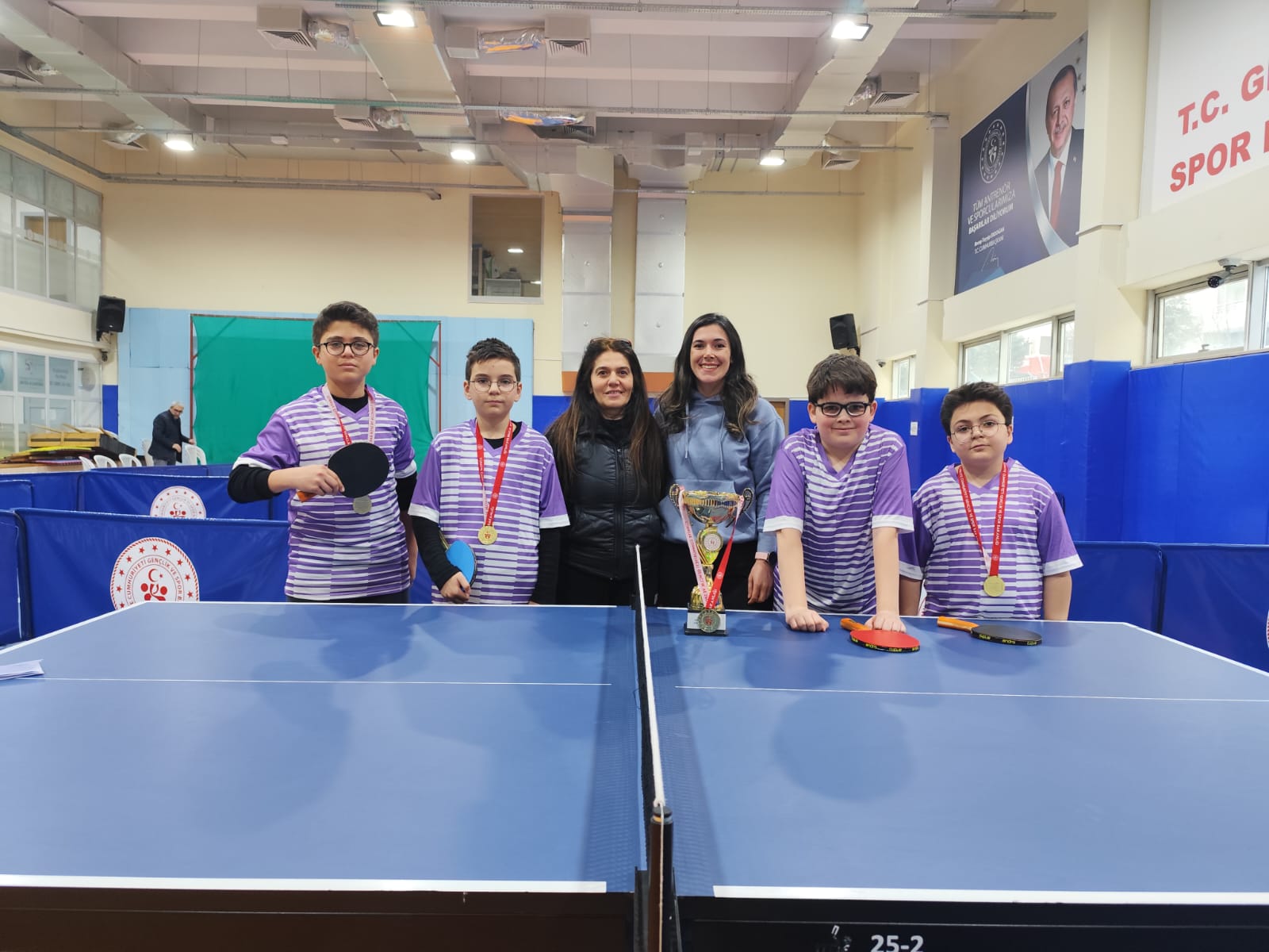 Okul Sporları küçükler kız- erkek Masa Tenisi il birinciliği müsabakaları 20-21 Mart 2025 tarihleri arasında Nevşehir Gençlik Merkezi Spor salonunda gerçekleştirildi. Çekişmeli geçen müsabakalar sonucunda dereceye giren okullarımıza ödülleri Gençlik ve Spor Şube Md. Sayın Fatma Nihan ADIYAMAN, Cumhuriyet OO. Müdürümüz Nail DEMİRTAŞ ve Beden Eğitimi Öğretmenlerimiz tarafından takdim edildi. Nevşehir Masa Tenisi İl Temsilciliği olarak ilimizi Türkiye şampiyonası gurup müsabakalarında temsil edecek Okullarımıza başarılar dileriz.