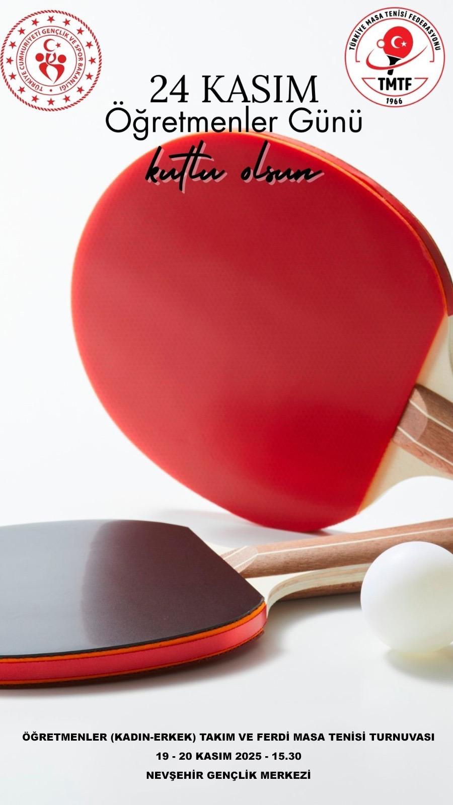 24 Kasım Öğretmenler günü münasebetiyle 19-20 Kasım 2025 tarihlerinde takım ve ferdi masa tenisi müsabakaları saat 15.30'da Gençlik Merkezi Spor Salonunda yapılacaktır.